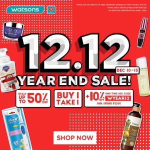 Watsons – 12.12 Deal: Get Up to 50% Discount, Buy 1 Take 1 plus 10% Off
