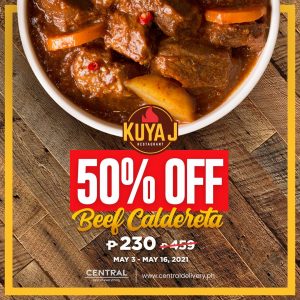 Pasarapin ang araw with a 50% OFF Kuya J Beef Caldereta! Pa-deliver na via www.centraldelivery.ph and enjoy this exclusive deal. #KuyaJResto