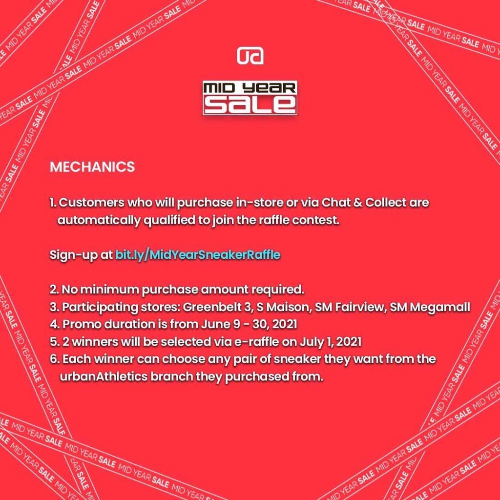 Enjoy the Urban Athletics Mid Year Sale even more when you shop at their stores! Get a chance to win ANY pair of sneakers of your choice at the Urban Athletics Sneaker Raffle! Check out the mechanics.
