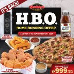 Shakey’s Home Bonding offer comes with a large Thin Crust pizza (All Time Favorite or Classic pizza), 8pcs Chicken ‘N’ Mojos, 8pcs Mozzarella Cheese Sticks and 1L House Blend Iced Tea for only P999!