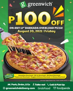 You deserve an overloaded treat! Order your favorite Greenwich 12” Barkada Size Overload Pizza and get P100 off! Promo is available today only!