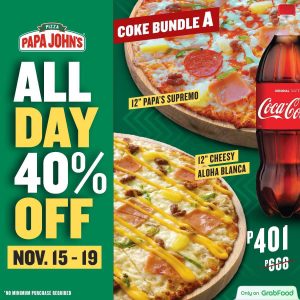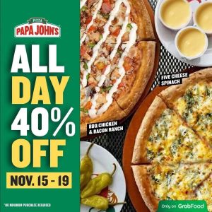 Papa John’s – All Day 40% Off via GrabFood