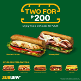 Enjoy two 6-inch subs for just ₱200 during #SubHappyHour from 3pm to 6pm! Choose from Sliced Chicken and Ham, Roasted Chicken, Subway Melt™, Ham, Sliced ...