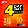 ACE Hardware 4-Day Sale May 28-31. BIG discount on specials. EXTRA 10% OFF on ALL ITEMS for a min. spend of P2K with your ACE Rewards, ...