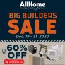 Get power tools, paint, bathroom fixtures, and more at up to 60% OFF at AllHome’s BIG BUILDERS SALE on Dec. 19-31, 2020. This BIG SALE makes building something to look forward to! Tag your fellow ...
