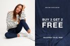 Don’t miss this online exclusive! Buy 3 Get 2 Free. Ends on Nov 22. Use code B3G2 at https://gap.com.ph