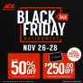 ACE HARDWARE BLACK FRIDAY Sale Nov 26-28! Up to 50% OFF on specials. EXTRA P250 OFF for min. P2,500 spend using ACE Rewards/SMAC.