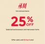 H&M - Online Exclusive: Get 25% Off Selected Women's and Men's Wear Items